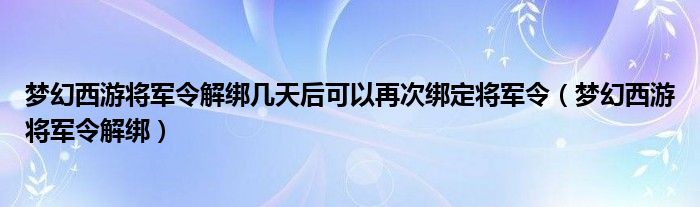 夢(mèng)幻西游將軍令解綁幾天后可以再次綁定將軍令(夢(mèng)幻西游將軍令解綁)