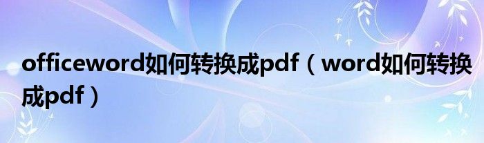 officeword如何轉換成pdf(word如何轉換成pdf)