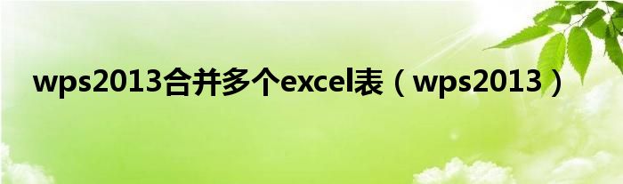 wps2013合并多個excel表(wps2013)