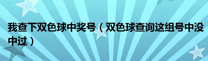我查下雙色球中獎號(雙色球查詢這組號中沒中過)