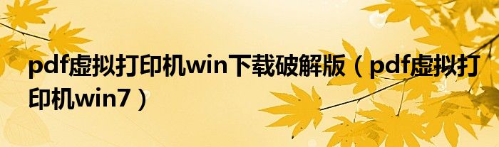 pdf虛擬打印機(jī)win下載破解版(pdf虛擬打印機(jī)win7)
