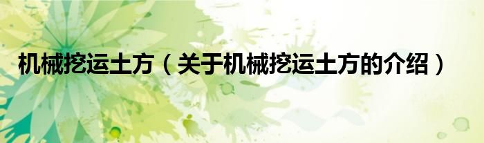 機(jī)械挖運土方(關(guān)于機(jī)械挖運土方的介紹)
