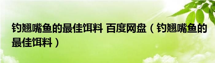 釣翹嘴魚的最佳餌料 百度網(wǎng)盤(釣翹嘴魚的最佳餌料)