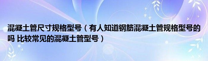 混凝土管尺寸規(guī)格型號(hào)(有人知道鋼筋混凝土管規(guī)格型號(hào)的嗎 比較常見的混凝土管型號(hào))