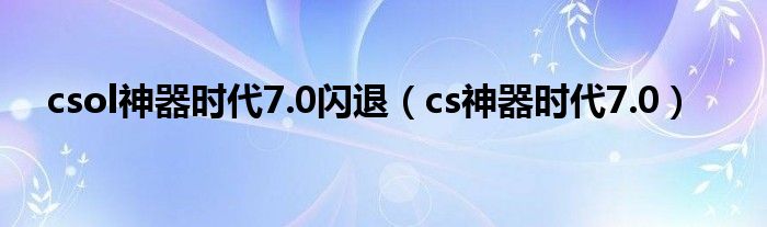 csol神器時(shí)代7.0閃退(cs神器時(shí)代7.0)