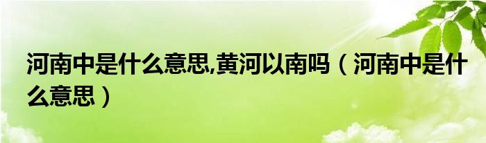 河南中是什么意思,黃河以南嗎(河南中是什么意思)