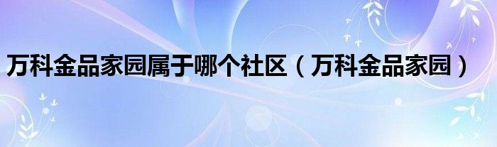 萬科金品家園屬于哪個社區(qū)(萬科金品家園)