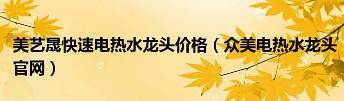 美藝晟快速電熱水龍頭價(jià)格(眾美電熱水龍頭官網(wǎng))