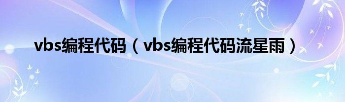 大家好,小聯(lián)來為大家解答以上的問題。vbs編程代碼,vbs編程代碼流星雨這個很多人還不知道,現(xiàn)在讓我們一起來看看吧!