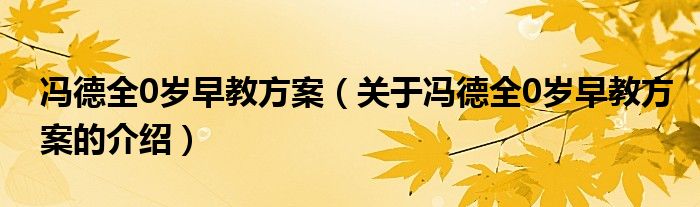 馮德全0歲早教方案(關(guān)于馮德全0歲早教方案的介紹)