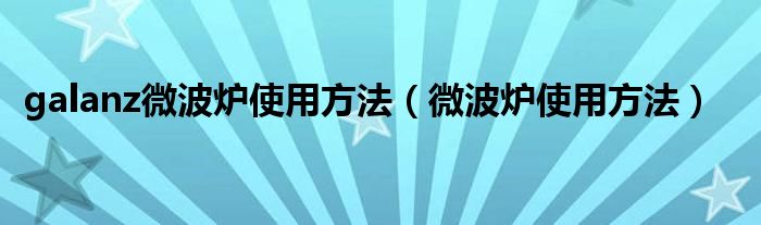 galanz微波爐使用方法(微波爐使用方法)