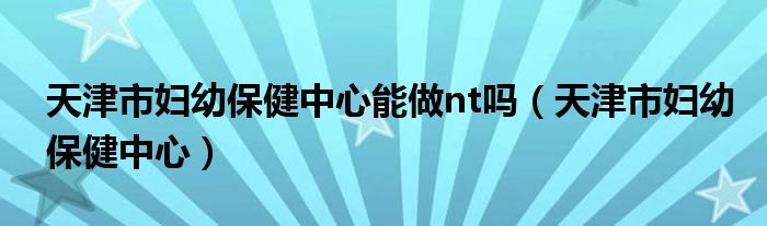 天津市婦幼保健中心能做nt嗎(天津市婦幼保健中心)
