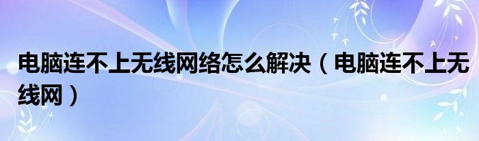 電腦連不上無線網(wǎng)絡怎么解決(電腦連不上無線網(wǎng))
