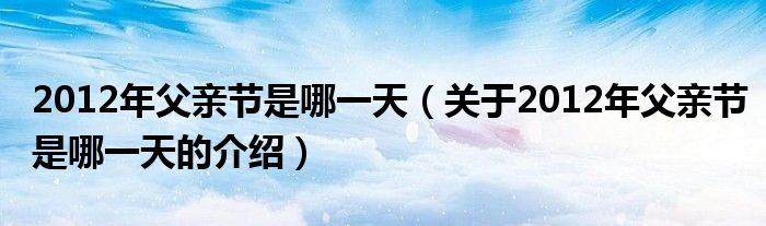 2012年父親節(jié)是哪一天(關(guān)于2012年父親節(jié)是哪一天的介紹)