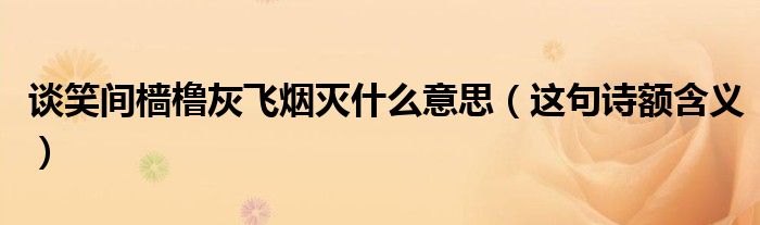 各位網(wǎng)友們好,我是編輯小夏,為大家解答談笑間檣櫓灰飛煙滅什么意思,這句詩額含義問題。一起往下看看