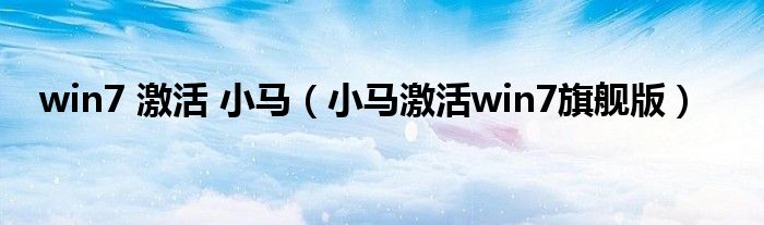 win7 激活 小馬(小馬激活win7旗艦版)