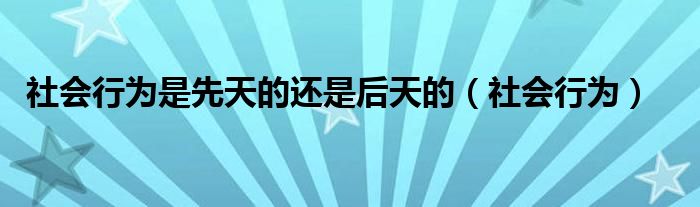 大家好,小聯(lián)來為大家解答以上的問題。社會行為是先天的還是后天的,社會行為這個很多人還不知道,現(xiàn)在讓我們一起來看看吧!