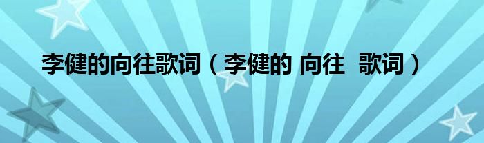 1、歌名:向往歌手:李建作曲:李建? 作詞:李建我知道并不是? 所有鳥兒都飛翔當(dāng)夏天過去后? 還有鮮花未曾開放我害怕看到你? 獨自一人絕望更害怕看不到你? 不能和你一起迷惘多想你在我身旁? 看命運變幻無常體會這默默忍耐的力量? 當(dāng)春風(fēng)掠過山崗依然能感覺寒冷? 卻無法阻擋對溫暖的向往我知道并不是? 耕耘就有收獲當(dāng)淚水流干后? 生命還是那么脆弱多殘忍? 你和我就像流星劃落? 多絢爛飛馳而過? 點亮黑夜最美焰火多想你在我身旁? 看命運變幻無常體會這默默忍耐的力量? 當(dāng)春風(fēng)掠過山崗依然能感覺寒冷? 卻無法阻擋對溫暖的向往? 向往? 向往多想你在我身旁? 看命運變幻無常體會這默默忍耐的力量? 當(dāng)春風(fēng)掠過山崗依然能感覺寒冷? 卻無法阻擋對溫暖的向往多想你在我身旁? 看命運變幻無常體會這默默忍耐的力量? 當(dāng)春風(fēng)掠過山崗依然能感覺寒冷? 又怎能停止對溫暖的向往? 向往? 向往擴展資料:《向往》是李健作詞作曲并演唱的一首歌曲,收錄于其2005年發(fā)行專輯《為你而來》和2013年發(fā)行專輯《李健拾光》中。