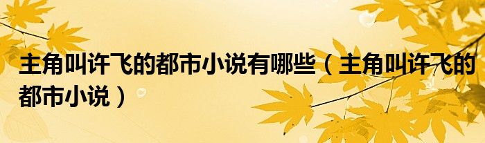 主角叫許飛的都市小說有哪些(主角叫許飛的都市小說)