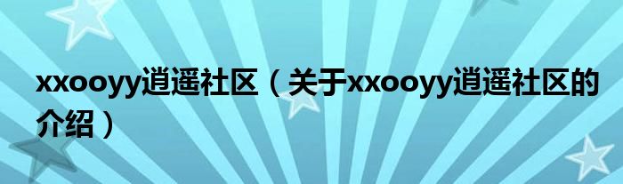 xxooyy逍遙社區(qū)(關(guān)于xxooyy逍遙社區(qū)的介紹)