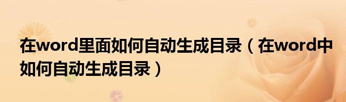 在word里面如何自動(dòng)生成目錄(在word中如何自動(dòng)生成目錄)