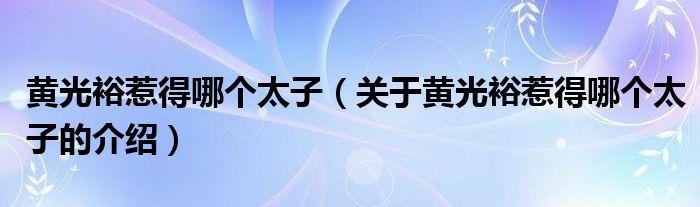 黃光裕惹得哪個(gè)太子(關(guān)于黃光裕惹得哪個(gè)太子的介紹)
