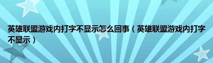 英雄聯(lián)盟游戲內(nèi)打字不顯示怎么回事(英雄聯(lián)盟游戲內(nèi)打字不顯示)
