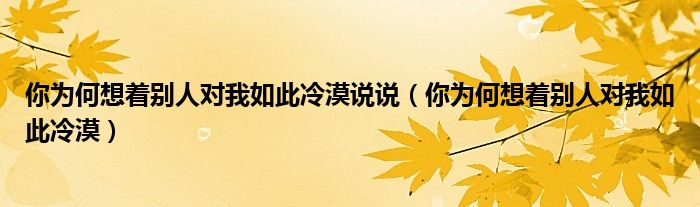 你為何想著別人對(duì)我如此冷漠說(shuō)說(shuō)(你為何想著別人對(duì)我如此冷漠)