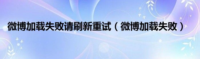 哈嘍,小天來(lái)為大家解答以下的問(wèn)題,關(guān)于微博加載失敗請(qǐng)刷新重試,微博加載失敗這個(gè)很多人還不知道,那么現(xiàn)在讓我?guī)е蠹乙黄饋?lái)看看吧!