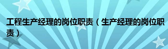 工程生產(chǎn)經(jīng)理的崗位職責(zé)(生產(chǎn)經(jīng)理的崗位職責(zé))