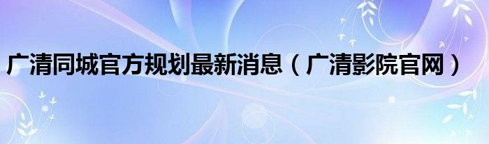 廣清同城官方規(guī)劃最新消息(廣清影院官網(wǎng))