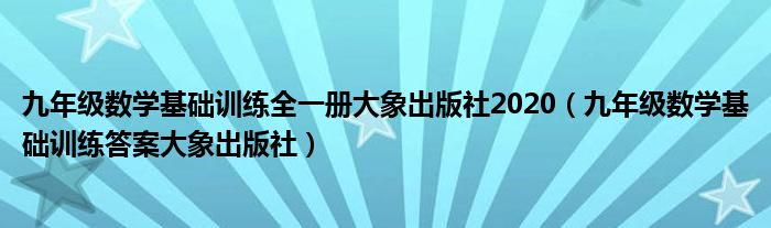 九年級(jí)數(shù)學(xué)基礎(chǔ)訓(xùn)練全一冊(cè)大象出版社2020(九年級(jí)數(shù)學(xué)基礎(chǔ)訓(xùn)練答案大象出版社)