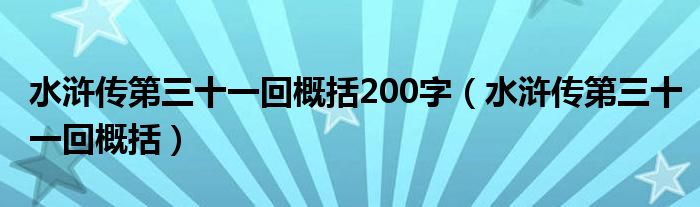 水滸傳第三十一回概括200字(水滸傳第三十一回概括)