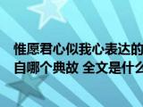 關(guān)于惟愿君心似我心表達(dá)的是什么感情,惟愿君心似我心這句出自哪個(gè)典故 全文是什么這個(gè)很多人還不知道,今天菲菲來(lái)為大家解答以上的問(wèn)題, 瀏覽全文>>