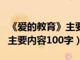 關(guān)于《愛的教育》主要內(nèi)容概括兩百字,愛的教育主要內(nèi)容100字這個很多人還不知道,今天菲菲來為大家解答以上的問題,現(xiàn)在讓我們一起來看看 瀏覽全文>>
