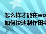 關(guān)于怎么樣才能在word制作田字格,在WORD中如何快速制作田字格這個很多人還不知道,今天菲菲來為大家解答以上的問題,現(xiàn)在讓我們一起來看看 瀏覽全文>>
