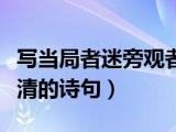關(guān)于寫當(dāng)局者迷旁觀者清的詩句,當(dāng)局者迷旁觀者清的詩句這個很多人還不知道,今天菲菲來為大家解答以上的問題,現(xiàn)在讓我們一起來看看吧!1 瀏覽全文>>