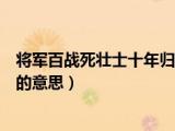 關(guān)于將軍百戰(zhàn)死壯士十年歸的意思翻譯,將軍百戰(zhàn)死壯士十年歸的意思這個很多人還不知道,今天菲菲來為大家解答以上的問題,現(xiàn)在讓我們一起來 瀏覽全文>>