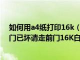 關(guān)于如何用a4紙打印16k,我家門壞了 想在門上寫幾個(gè)字如 此門已壞請(qǐng)走前門16K白紙打印機(jī)這個(gè)很多人還不知道,今天菲菲來(lái)為大家解答以上的 瀏覽全文>>