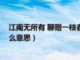 大家好,小聯(lián)來為大家解答以上的問題。江南無所有 聊贈(zèng)一枝春 啥意思,江南無所有聊贈(zèng)一枝春什么意思這個(gè)很多人還不知道,現(xiàn)在讓我們一起來 瀏覽全文>>