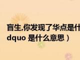 大家好,小聯(lián)來為大家解答以上的問題。盲生,你發(fā)現(xiàn)了華點是什么意思,ldquo 盲生你發(fā)現(xiàn)了華點 rdquo 是什么意思這個很多人還不知道,現(xiàn)在 瀏覽全文>>