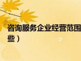 大家好,小聯(lián)來為大家解答以上的問題。咨詢服務(wù)企業(yè)經(jīng)營(yíng)范圍有哪些,咨詢服務(wù)企業(yè)經(jīng)營(yíng)范圍有哪些這個(gè)很多人還不知道,現(xiàn)在讓我們一起來看看吧 瀏覽全文>>