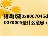 大家好,小聯(lián)來為大家解答以上的問題。錯(cuò)誤代碼0x8007045d是什么意思,有誰知道錯(cuò)誤代碼 0x80070005是什么意思這個(gè)很多人還不知道,現(xiàn)在讓我 瀏覽全文>>