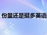 大家好,小聯(lián)來(lái)為大家解答以上的問(wèn)題。份量還是挺多英語(yǔ)怎樣表達(dá),份量還是分量這個(gè)很多人還不知道,現(xiàn)在讓我們一起來(lái)看看吧!1、應(yīng)該是 份 瀏覽全文>>