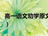 大家好,小華來為大家解答以上的問題。高一語文勸學(xué)原文及翻譯,高一語文勸學(xué)原文這個(gè)很多人還不知道,現(xiàn)在讓我們一起來看看吧!1、君子1曰: 瀏覽全文>>