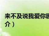 各位網(wǎng)友們好,我是編輯小夏,為大家解答來(lái)不及說(shuō)我愛(ài)你劇情,來(lái)不及說(shuō)我愛(ài)你劇情簡(jiǎn)介問(wèn)題。一起往下看看1、電視劇《來(lái)不及說(shuō)我愛(ài)你》改編 瀏覽全文>>