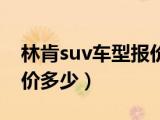 大家好,陽(yáng)陽(yáng)來(lái)為大家講解下。林肯suv車型報(bào)價(jià)多少,林肯新款suv價(jià)格報(bào)價(jià)多少很多人還不知道,現(xiàn)在讓我們一起來(lái)看看吧!1、全新林肯suv價(jià)格 瀏覽全文>>