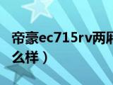 大家好,陽陽來為大家講解下。帝豪ec715rv兩廂價(jià)格,帝豪ec715rv兩廂怎么樣很多人還不知道,現(xiàn)在讓我們一起來看看吧!1、帝豪ec715rv兩廂這 瀏覽全文>>