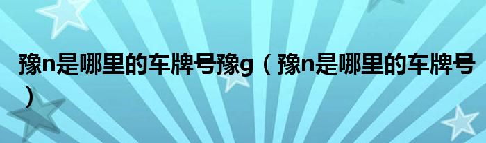 豫n是哪里的車牌號豫g(豫n是哪里的車牌號)