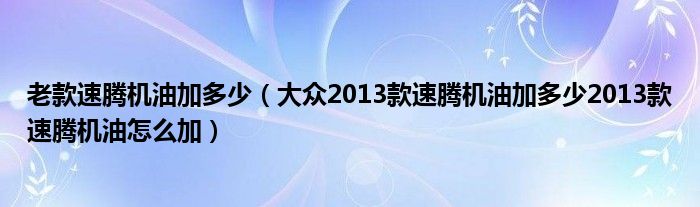 老款速騰機(jī)油加多少(大眾2013款速騰機(jī)油加多少2013款速騰機(jī)油怎么加)
